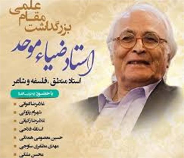 مقام علمی استاد دکتر ضیاء موحد استاد فلسفه، منطق و شاعر ۲۰ آبان ماه توسط خانه اندیشمندان علومانسانی با همکاری دبیرخانه جشنواره بینالمللی فارابی و مؤسسه پژوهشی حکمت و فلسفه ایران برگزار شد.