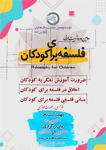 مؤسسه پژوهشی حکمت و فلسفه ایران دوره دوم تربیت مربی فلسفه برای کودکان را به صورت آموزش مجازی در سه سطح مقدماتی، پیشرفته (۱) و پیشرفته (۲) برگزار میکند.